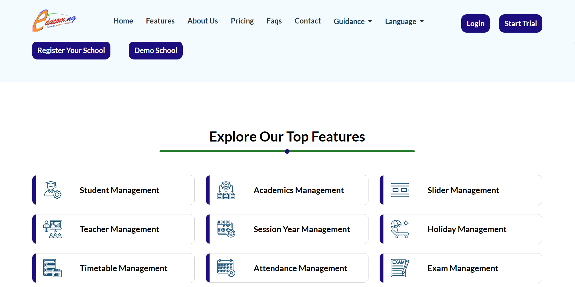 - Student and Staff Management: Educom provides a centralized database for managing all student and staff records. This includes personal information, attendance, academic history, and contact details. It simplifies processes like admissions, student transfers, and staff payroll, making it easy to access and update information as needed.